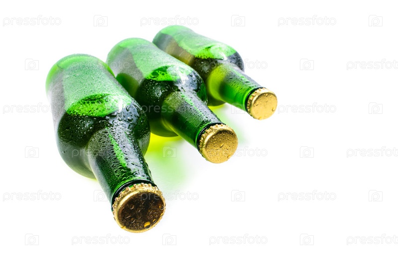 Запотевшие бутылки пива, изолированные на белом фоне