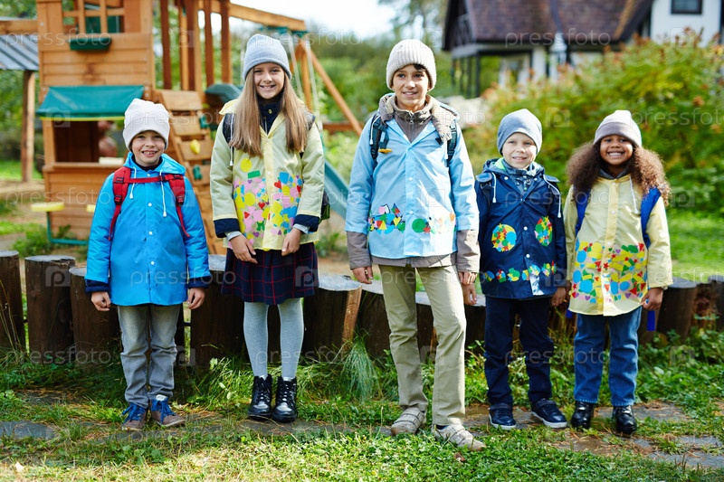 Улыбающиеся школьники на открытом воздухе