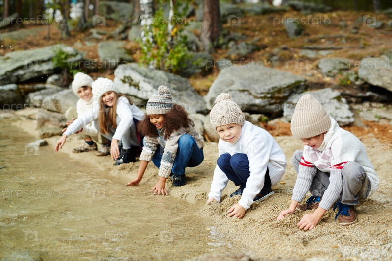 Дети, играющие с водой на озере