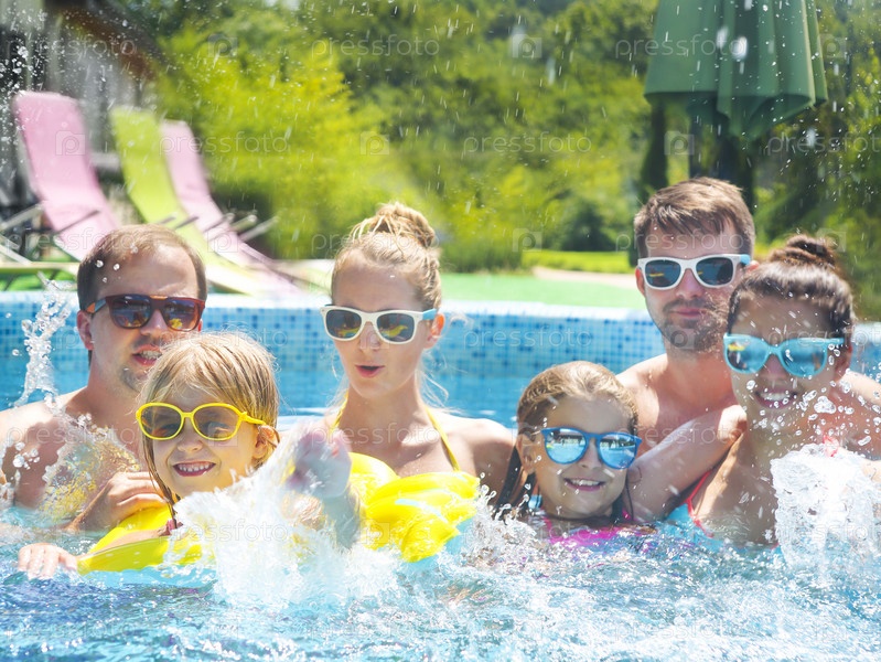 Молодые люди с детьми в бассейне