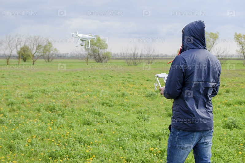 Человек с пультом дистанционного управления для дрона