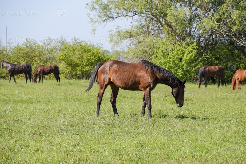 Лошади пасутся на пастбище