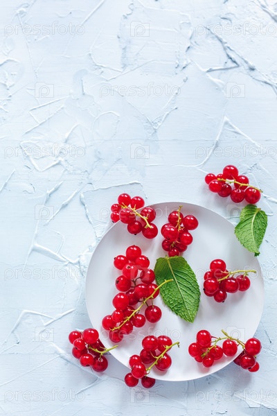 Грозди красной смородины на белой тарелке