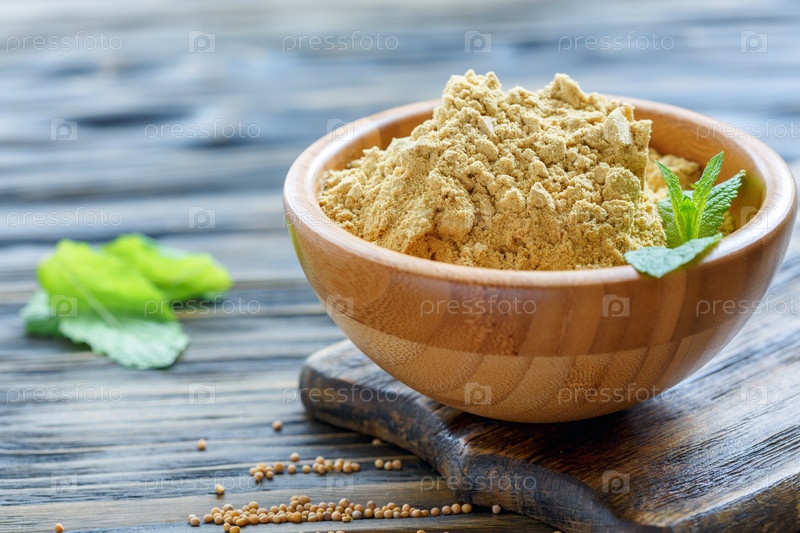Горчичный порошок в деревянной миске