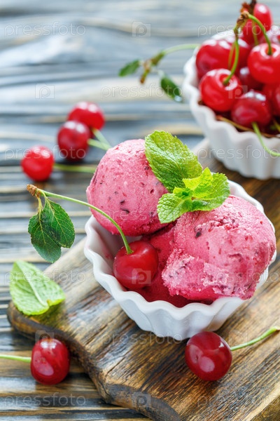 Домашнее вишневое мороженое в белой миске
