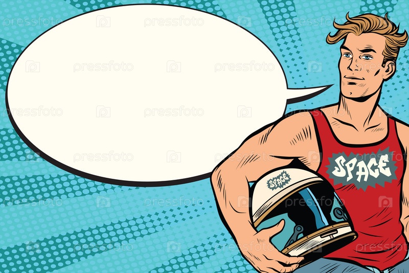 Сильный человек со шлемом астронавта