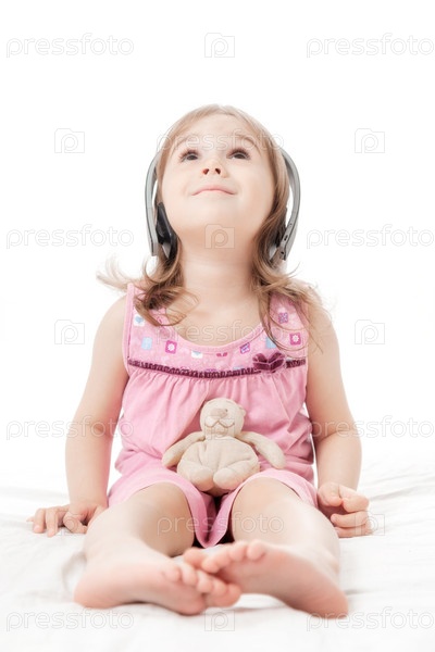Маленькая девочка слушает музыку