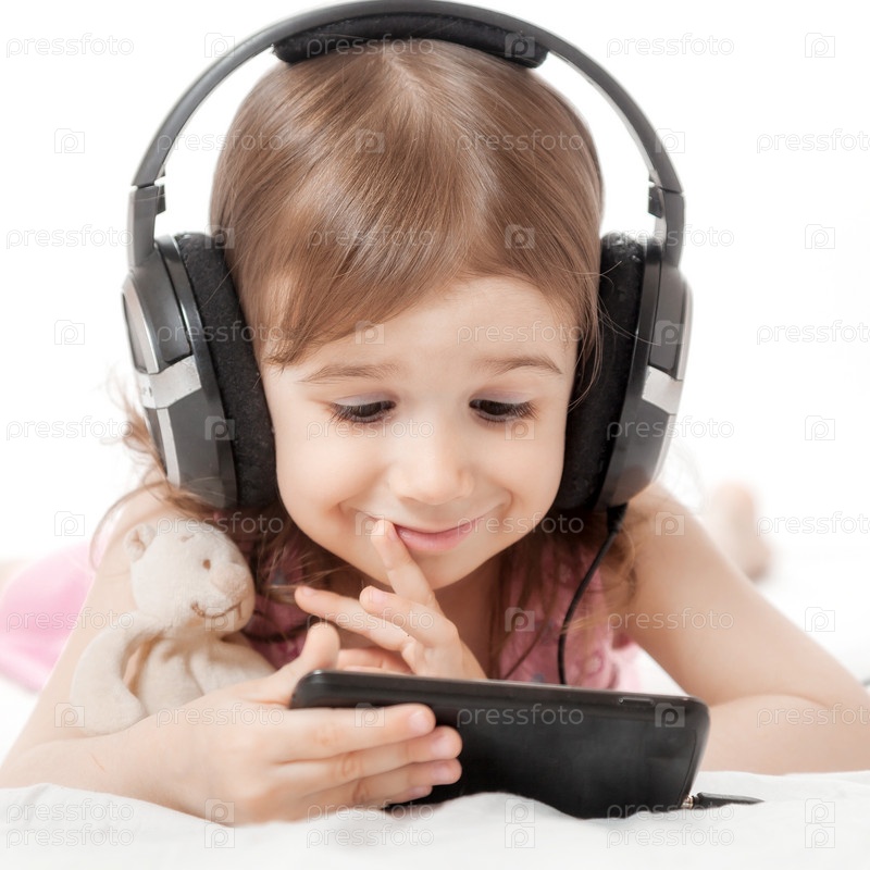 Маленькая девочка слушает музыку
