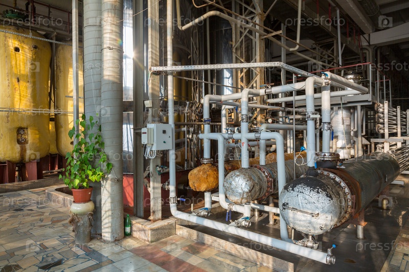 Оборудование для производства шампанского в цехе завода