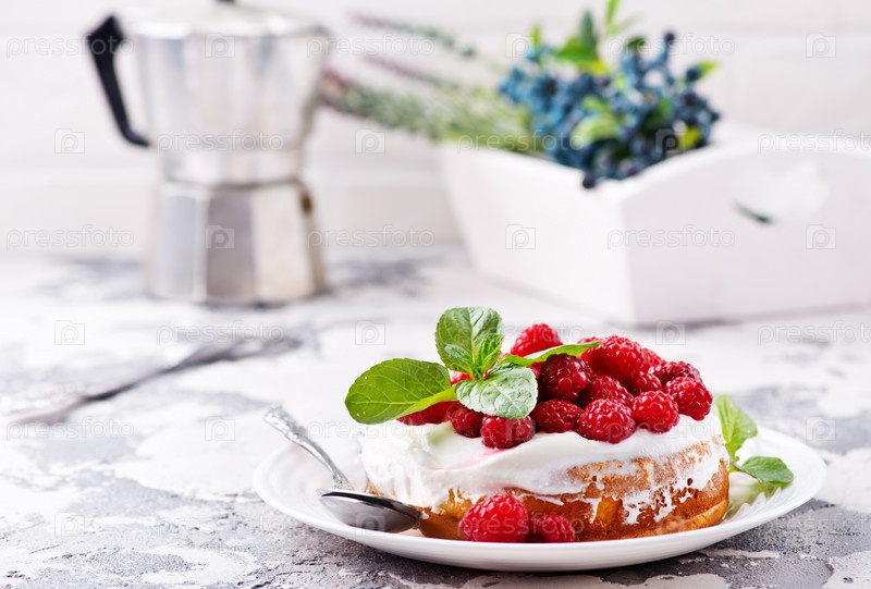 Кекс со сливками и свежей малиной