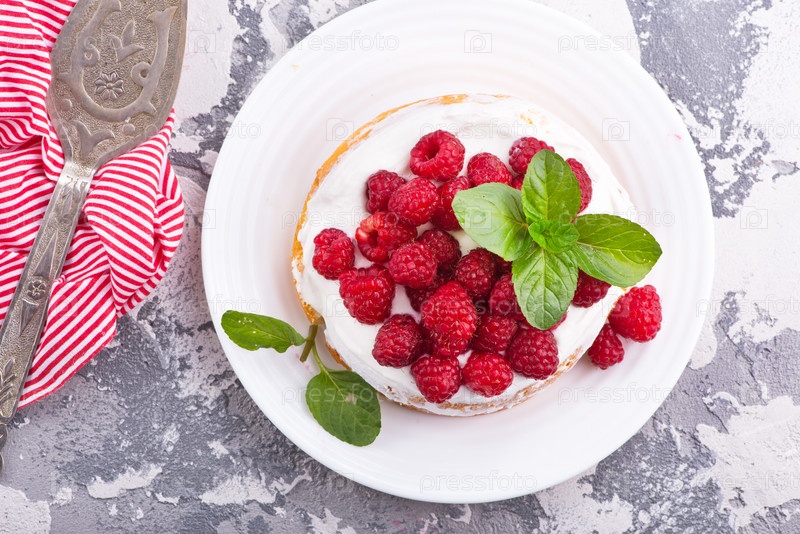 Кекс со сливками и свежей малиной