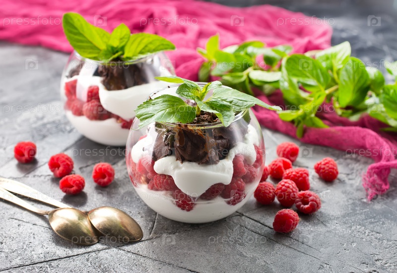 Десерт со свежими ягодами и сливками