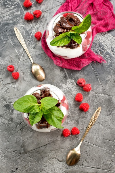 Десерт со свежими ягодами и сливками