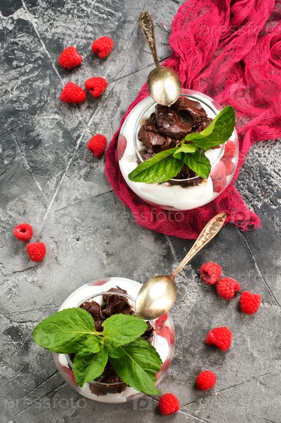 Десерт с шоколадом и ягодами