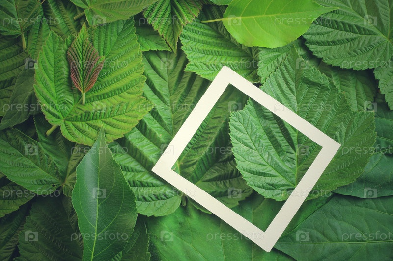 Креативный макет из листьев с бумажной рамкой