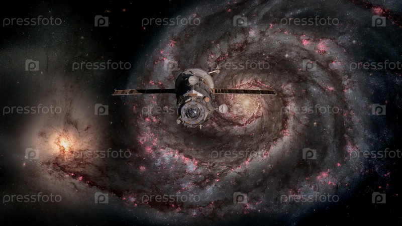 Космический корабль Прогресс на орбите галактики