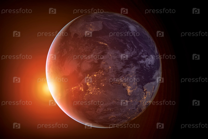 Земля из космоса в ночное время. Азия и Австралия