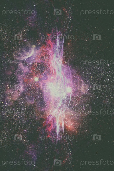 Красивая туманность, звезды и галактики