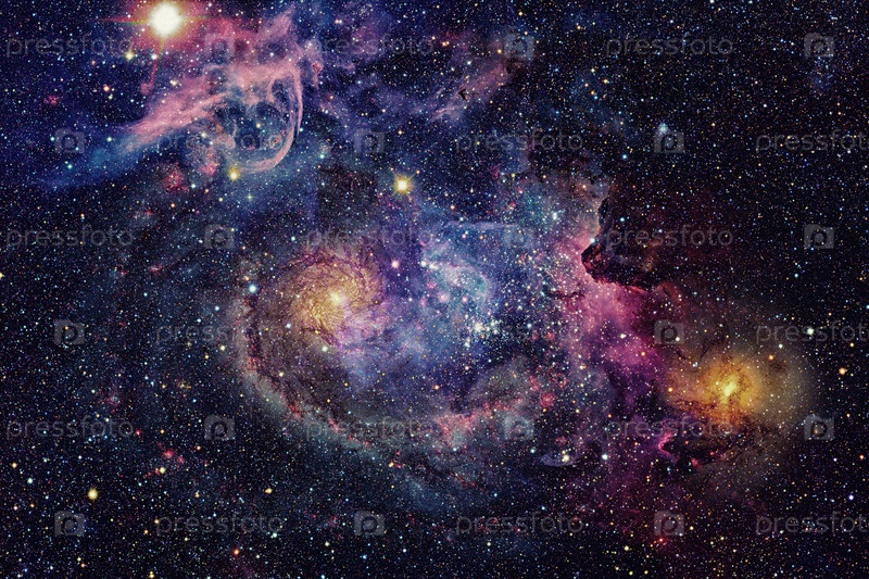 Красивая туманность, звезды и галактики