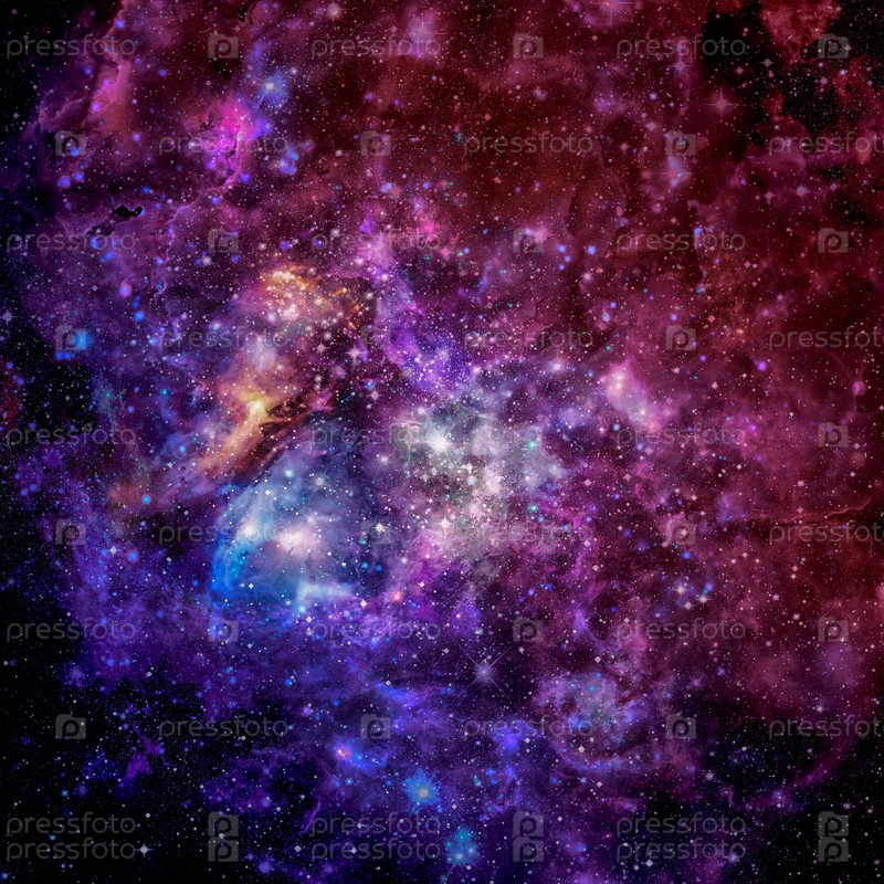 Красивая туманность, звезды и галактики