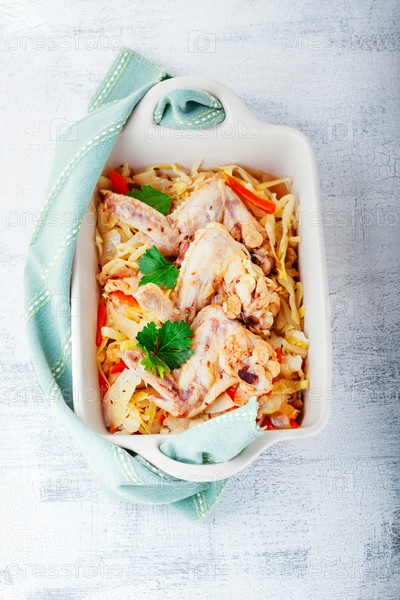 Тушеная капуста с курицей
