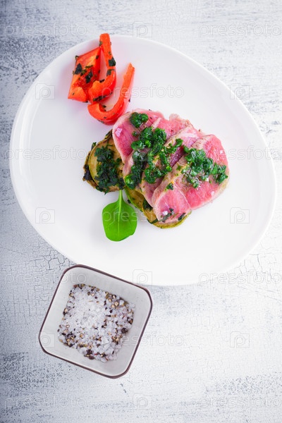 Тарелка нарезанной жареной говядины