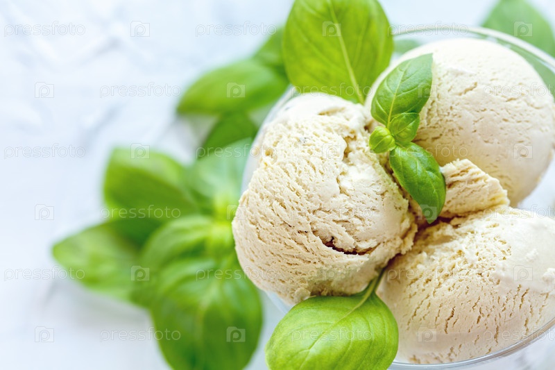 Мороженое с базиликом в стеклянной посуде