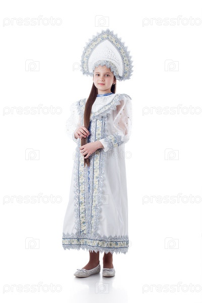 Симпатичная девушка в роскошном платье с убором