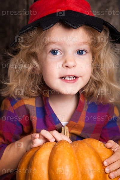 Девочка с большой тыквой. Хэллоуин
