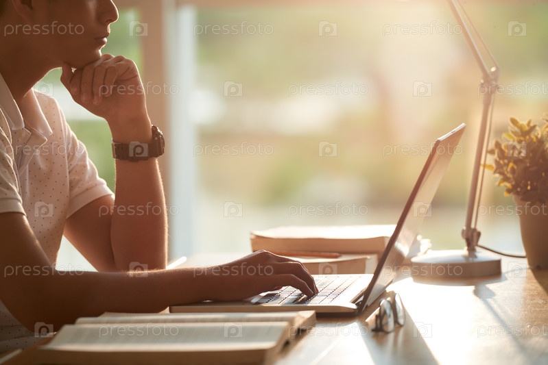 Студент работает на ноутбуке
