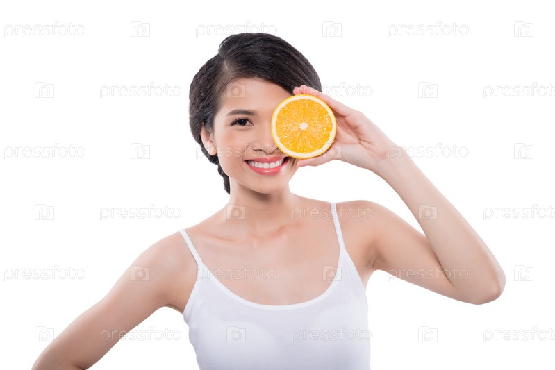 Прекрасная азиатская девушка с апельсином