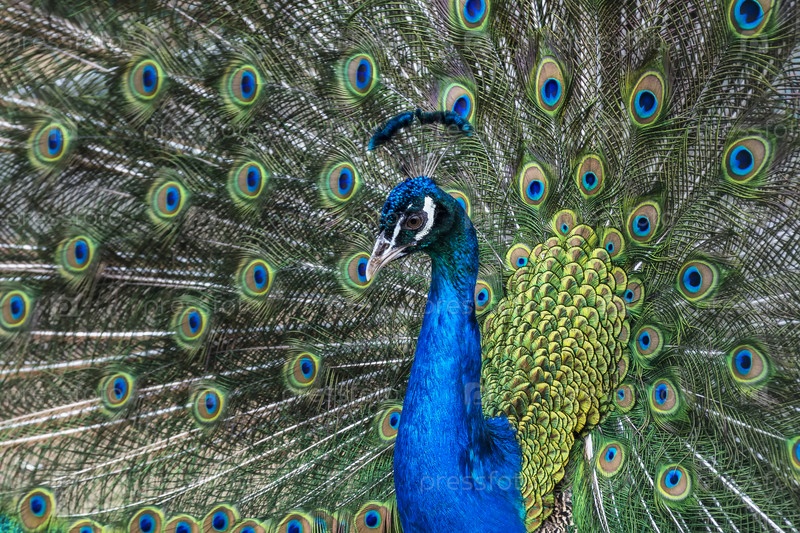 Павлин с разноцветными перьями