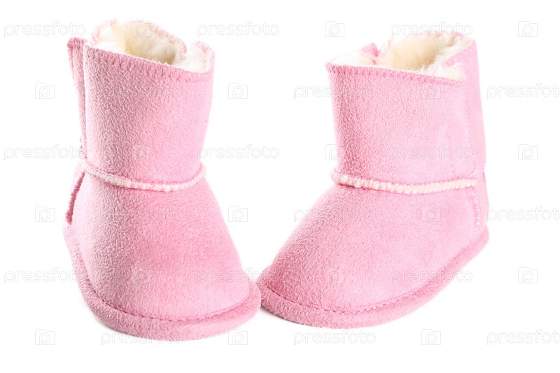 Пара розовых зимних детских сапог, изолированная на белом фоне