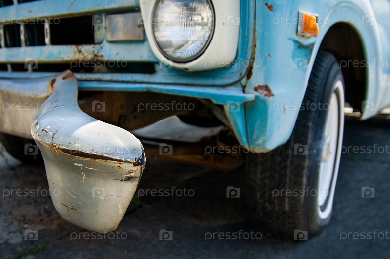 Передний бампер старого синего грузовика