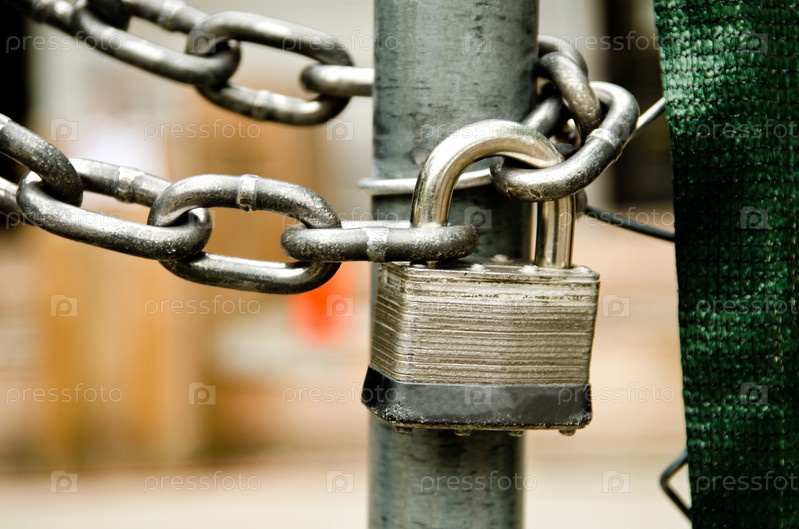 Замок и цепь на металлических воротах