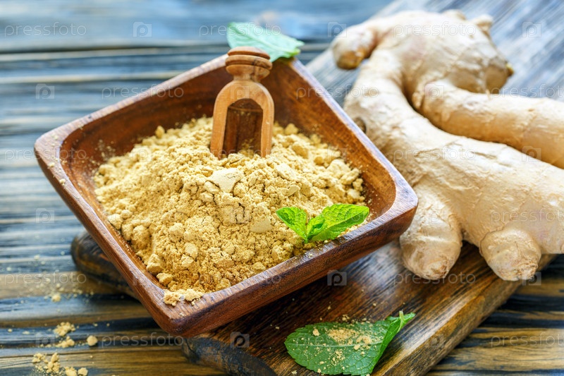 Молотый имбирь в деревянной миске
