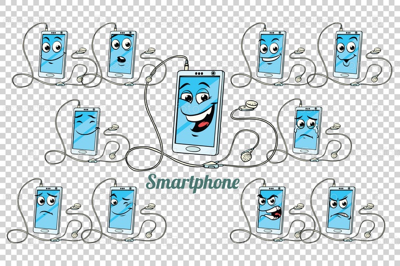 Смартфон и наушники коллекция эмоций