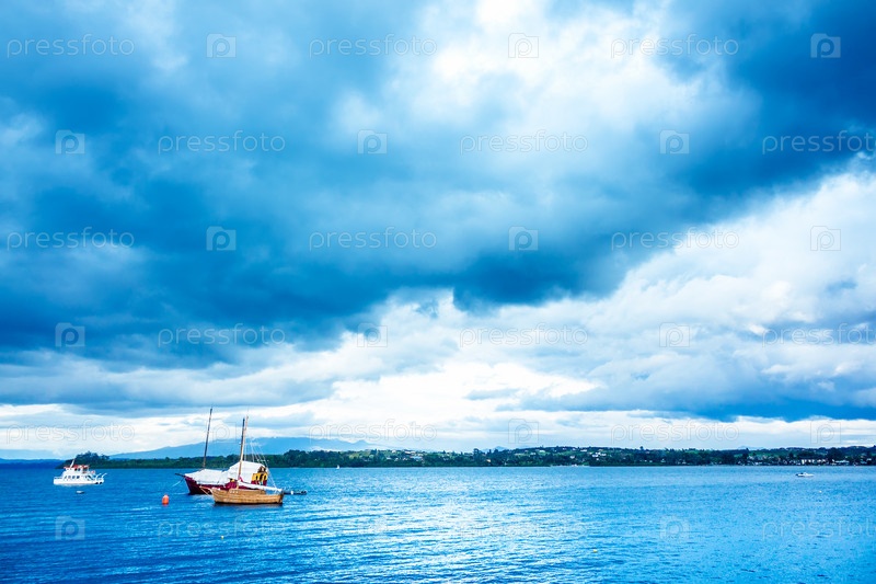 Голубое озеро с лодками