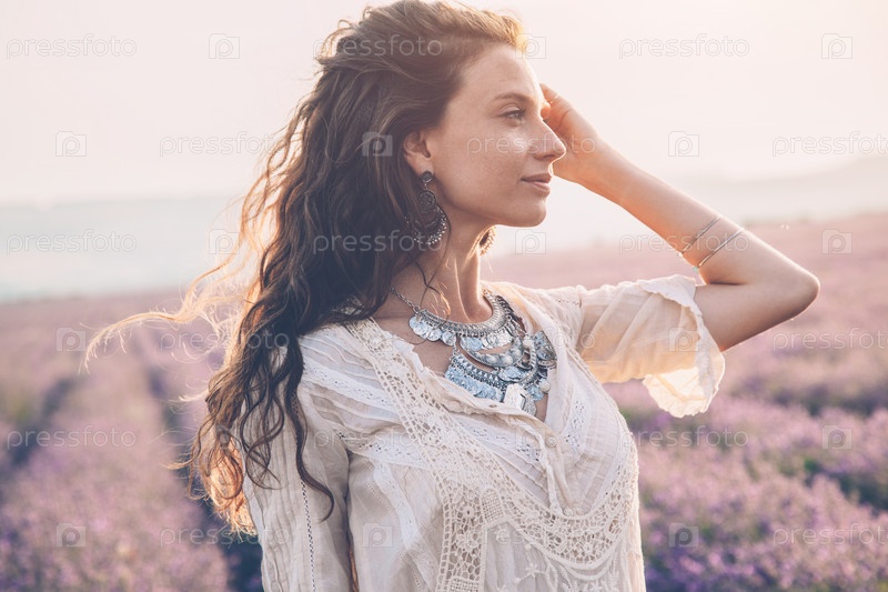 Красивая девушка в лавандовом поле