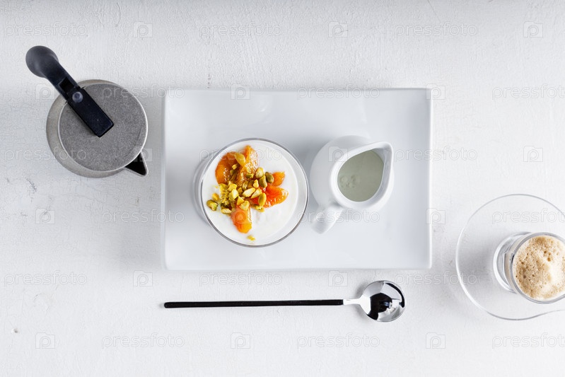 Йогурт с курагой и кофе