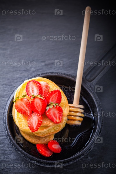 Сладкие блины с клубникой и медом