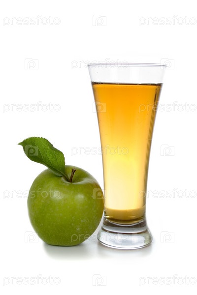 Яблочный сок и яблоко на белом фоне