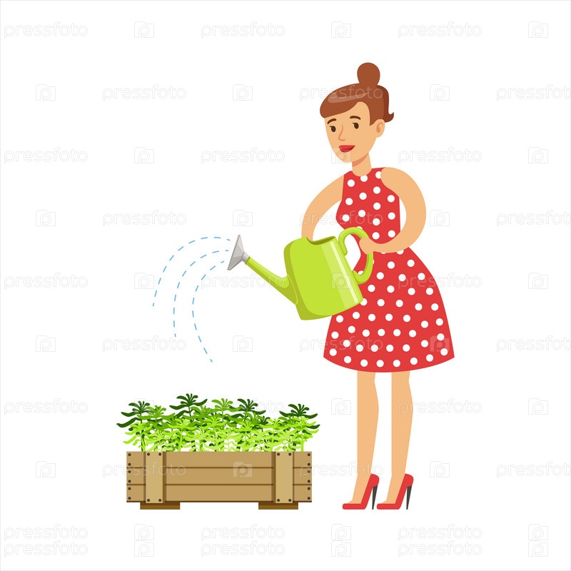 Женщина поливает растения