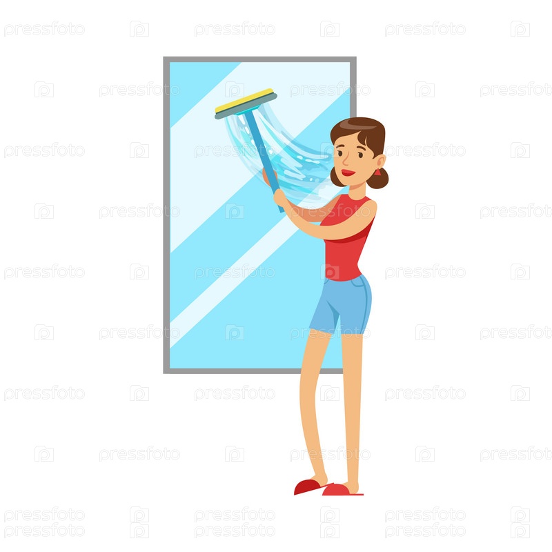Домохозяйка моет окна