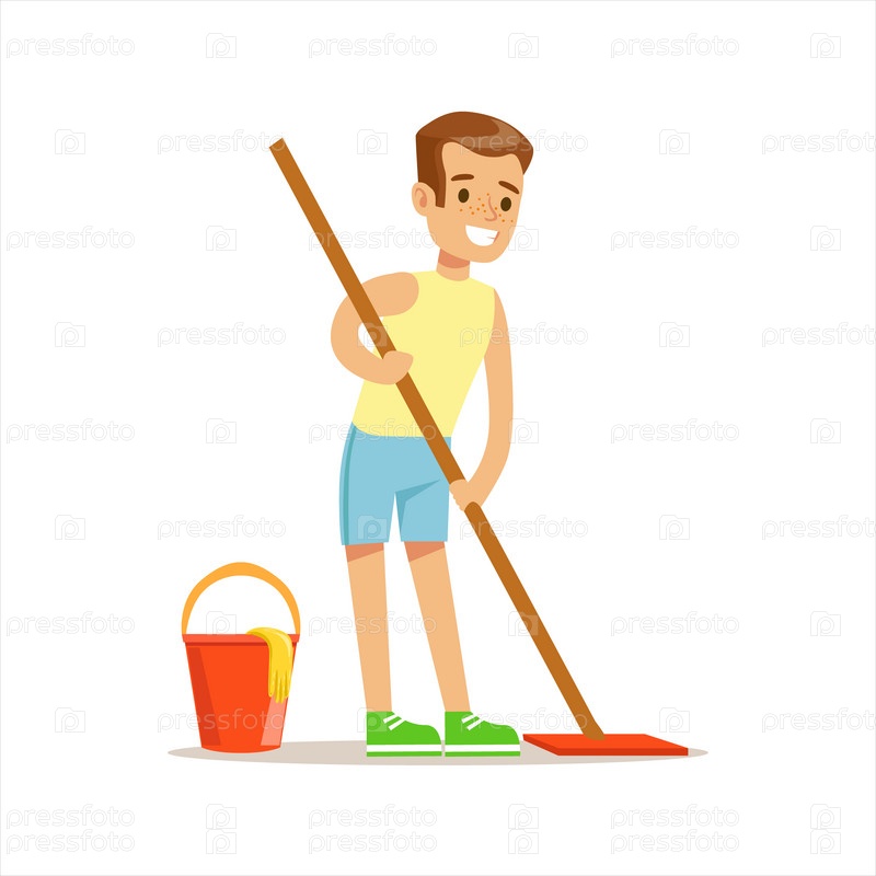 Мальчик моет пол
