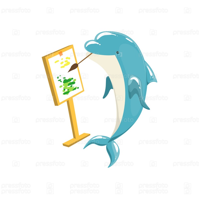 Дельфин рисует на холсте