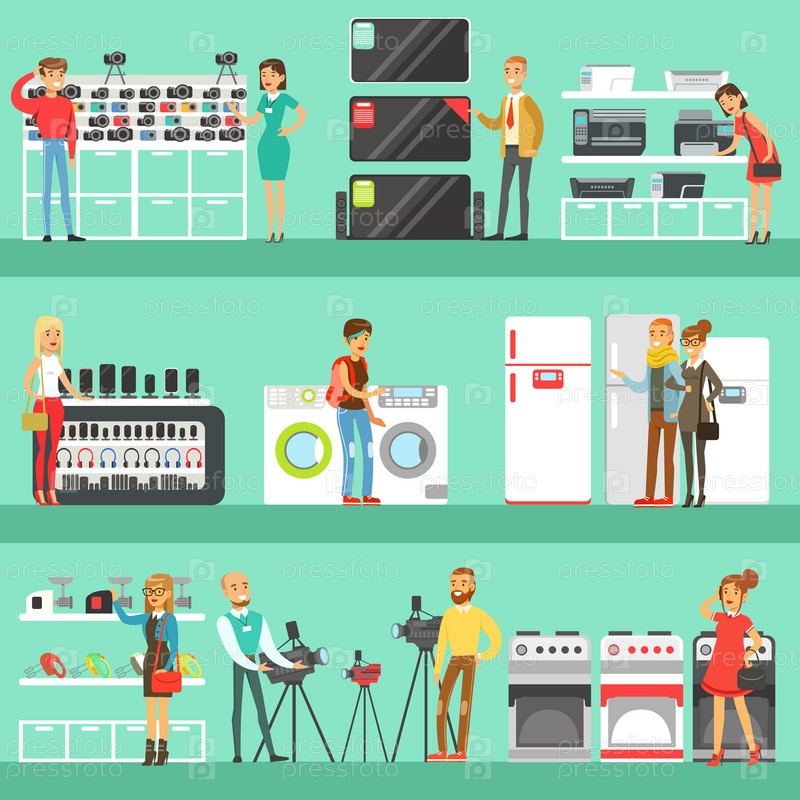 Счастливые люди в магазине электроники