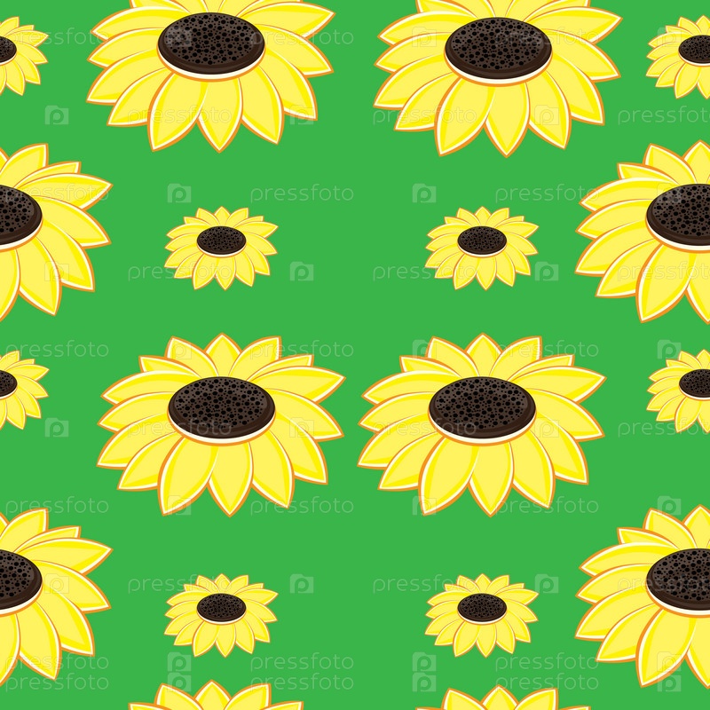 Бесшовный шаблон с красивыми подсолнухами на зеленом фоне