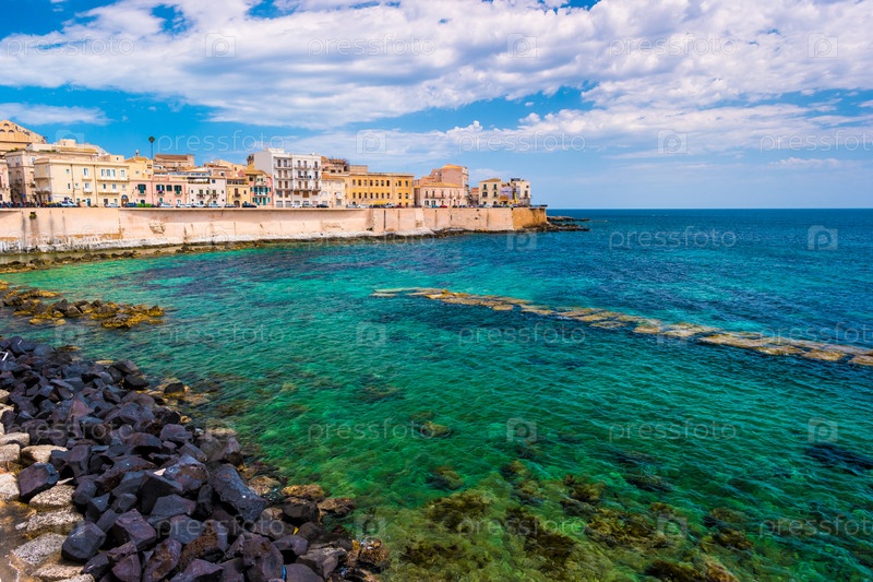 Побережье острова Ортиджия в городе Сиракузы