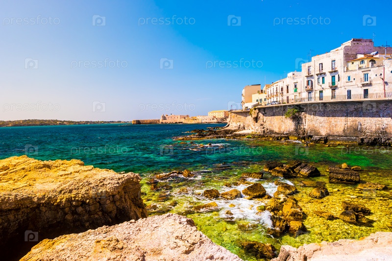 Побережье острова Ортиджия в городе Сиракузы